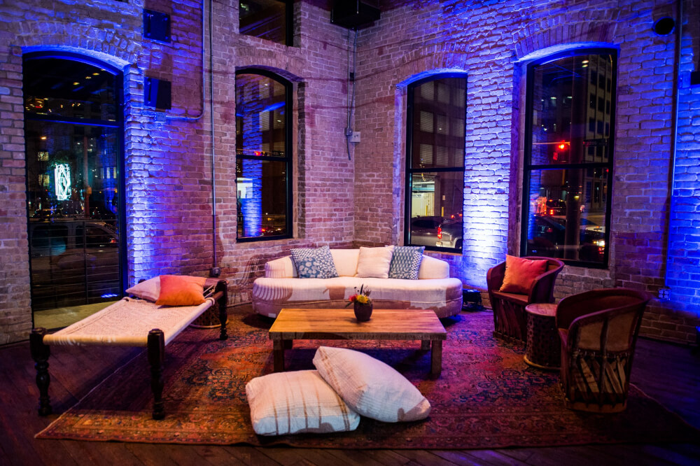 Open layouts for product launches, receptions, offsites, and sponsor activations. Two floors and a rooftop support day to night schedules.